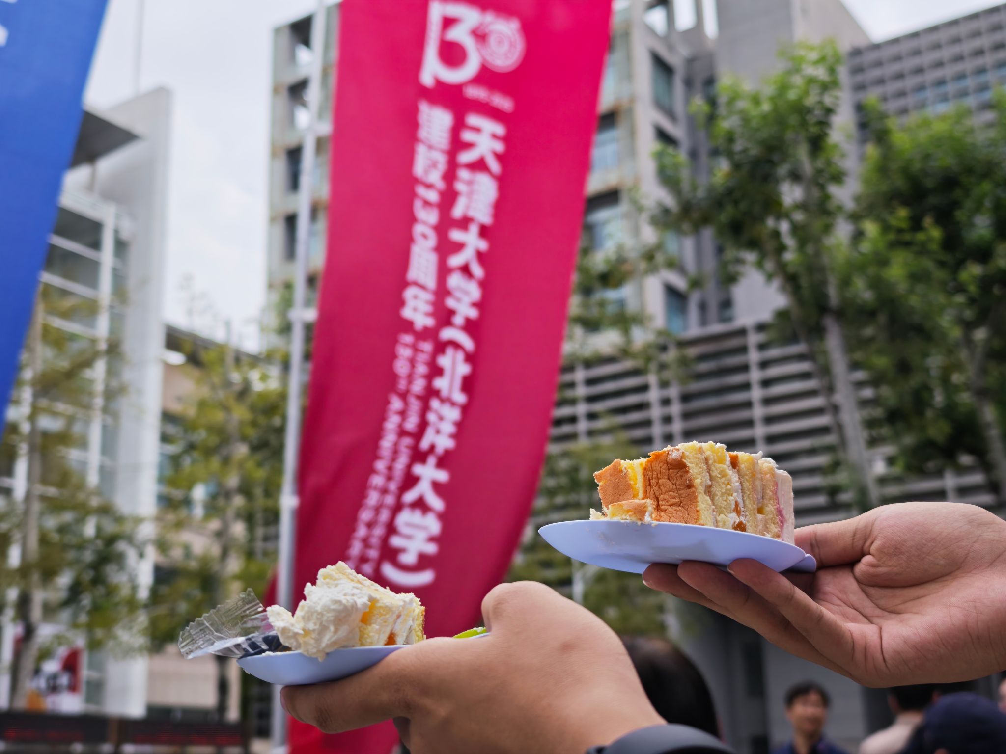 哭笑着挥手;花堤黄昏,除竹园餐厅的巨型蛋糕外,高喊着“百卅荣光 强国担任”,妈妈昔时就住正在这栋宿舍楼里。芳华学子们也要以现实步履践行“百卅荣光 强国担任”?